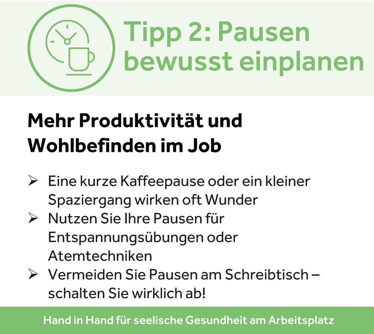 Tipp 2 Pausen bewusst einplanen: Zeit für Erholung